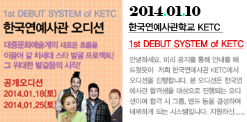 안녕하세요. 미리 공지를 통해 안내를 해드렸듯이 저희 한국연예사관 KETC에서 오디션을 진행합니다.
